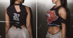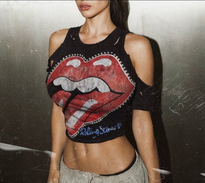 A reworked classic with edge. This cropped tee features the iconic tongue graphic, outlined in Swarovski crystals and finished with heavy distressing for a worn-in, one-of-one feel.