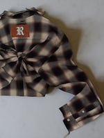 Details • Vintage plaid flannel base • Hand-applied crystal collar detailing • Cropped silhouette with extended sleeves • Distressed throughout for a lived-in feel